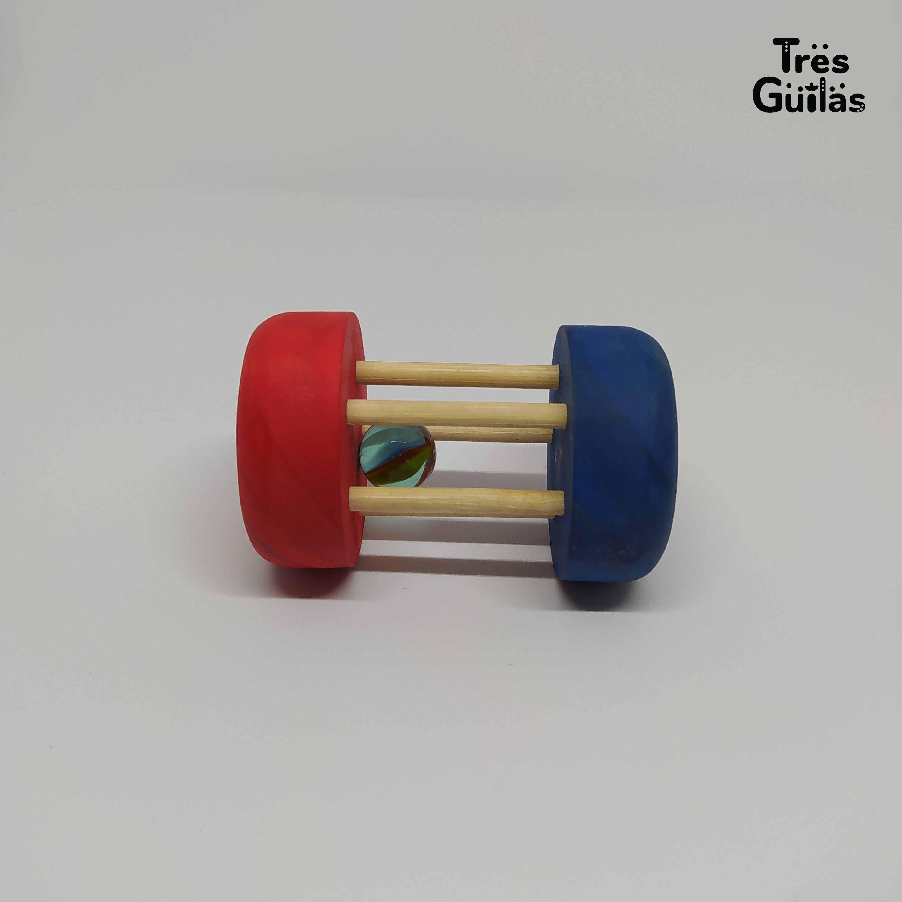 Este juguete es ideal para el desarrollo de la motora fina, exploración del mundo con la mano y la lengua, conocimiento de causa y efecto (sonido), coordinación, uso de las dos manos, motora gruesa, estímulo auditivo y como estímulo visual de profundidad y de colores.