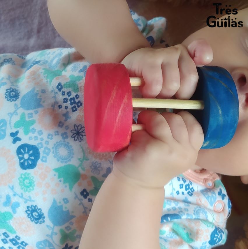 Podés conocer más sobre los periodos sensitivos por lo que pasa el bebé a esta edad, el detalle de los propósitos de desarrollo del juguete, cómo se debe presentar al niño según el Método Montessori y otros usos que se pueden dar al juguete dando click acá: Sonajero.